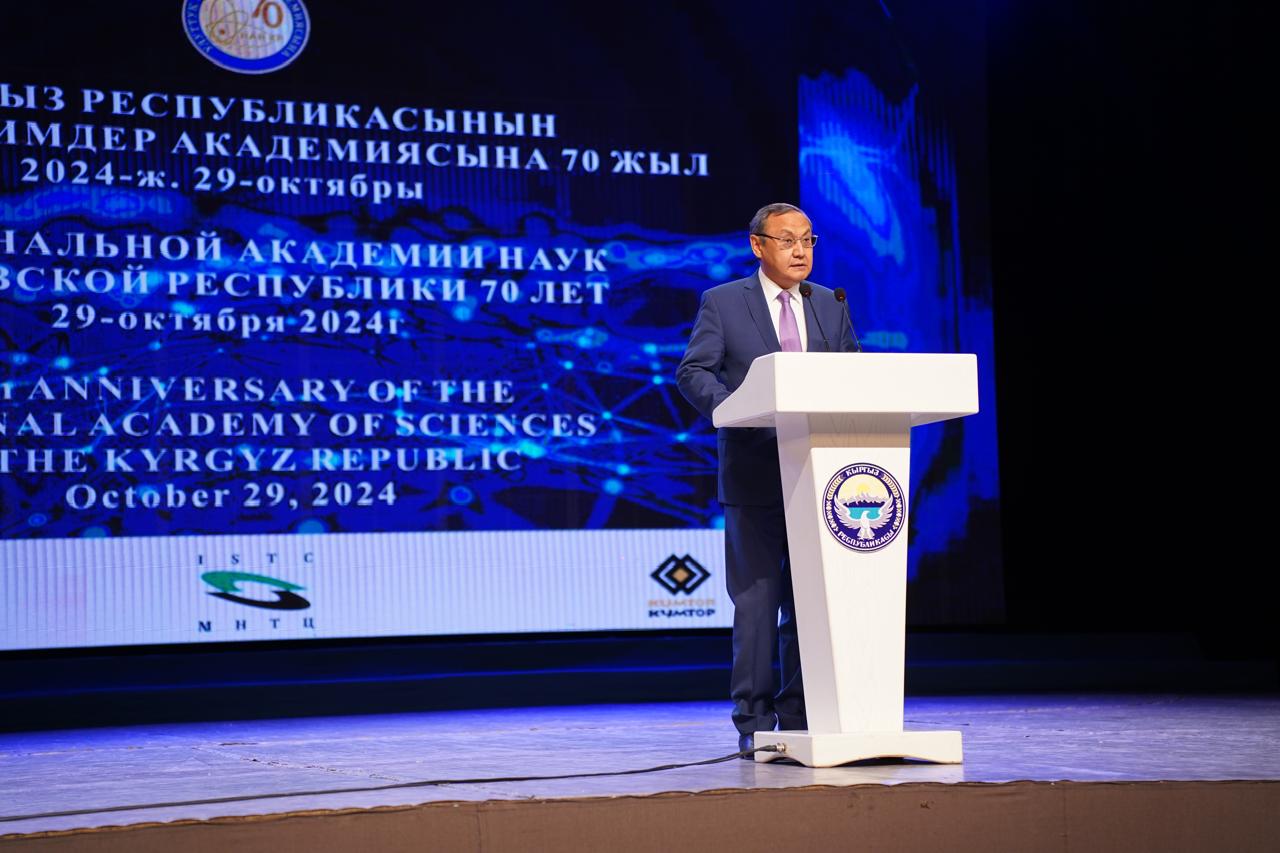 On October 29, 2024, a ceremonial meeting dedicated to the 70th anniversary of the National Academy of Sciences of the Kyrgyz Republic (NAS KR) was held at the Kyrgyz National Philharmonic Hall named after T. Satylganov in Bishkek. The event was attended by the President of the National Academy of Sciences of the Republic of Kazakhstan under the President of the Republic of Kazakhstan (NAS RK), Akhylbek Kurishbayev.