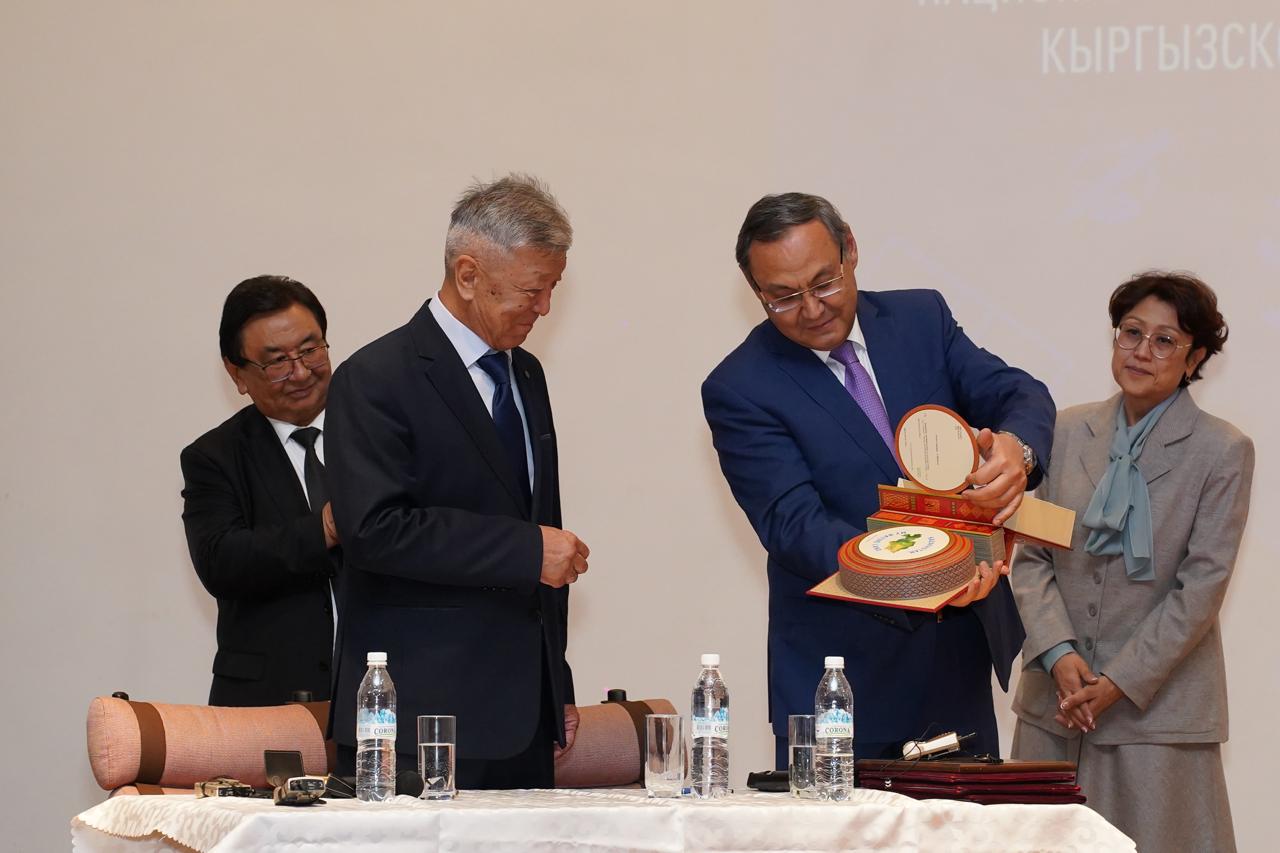 During the ceremonial meeting, welcoming speeches were delivered by high-ranking guests, including the Deputy Speaker of the Jogorku Kenesh of the Kyrgyz Republic Zh.K. Isaeva, the Deputy Prime Minister of the Kyrgyz Republic E.Zh. Baisalov, as well as ambassadors from several foreign countries, including the President of the National Academy of Sciences of the Republic of Kazakhstan A.K. Kurishbayev, the Vice President of the Russian Academy of Sciences V.Ya. Panchenko, the Vice President of the Mongolian Academy of Sciences Tserendorj Tsegmed, the President of the Academy of Sciences of the Republic of Tatarstan R.N. Minnikhanov, the Ambassador of the People’s Republic of China in the Kyrgyz Republic Du Dewen, the Executive Director of the International Scientific and Technical Center David Clive, the Chairman of the Siberian Branch of the Russian Academy of Sciences V.N. Parmon, the Chief Scientific Secretary of the Academy of Sciences of the Republic of Uzbekistan G.A. Bakhadirov, and the Director for International Cooperation of the National Research Center «Kurchatov Institute» Yu.N. Nesterchuk.